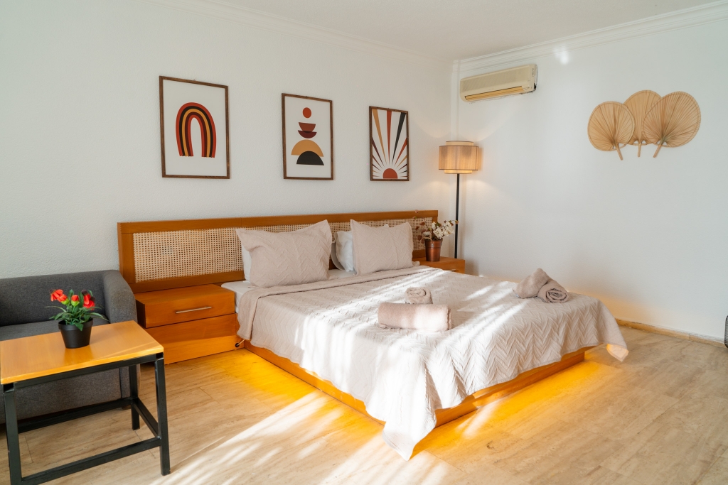 Mega Bodrum Gümbet, Gümbet Barlar Sokağı’nın bir üst sokağındadır. Tesis Barlar Sokağına 100 metre, denize 300 metre, Bodrum’a 3 Km. mesafededir. Tesis 2022 yılında yenilenmiştir. Tesiste 45 adet oda bulunmaktadır. Tesisin tüm odaları şehir manzaralıdır.22 metrekare genişliğindeki odaların tamamında taban halı, klima, tv, fön mevcuttur. Odalarda minibar bulunmaktadır. Tesiste ücretsiz otopark ve wi-fi hizmeti bulunmaktadır.