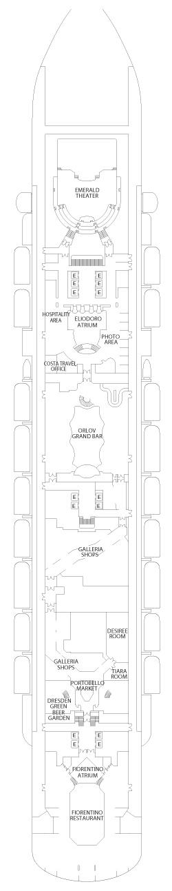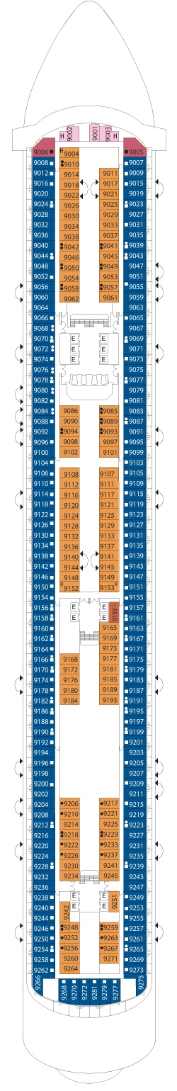 Kabin Özellikleri: İki adet tek kişilik yatak veya bir büyük yatak yatak, duş, telefon , televizyon , saç kurutma makinesi , kasa ve minibar bulunmaktadır. Kabinler de büyük bir pencere bulunur. Dış premium kabinler geminin üst katlarında yer almaktadır.