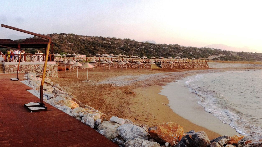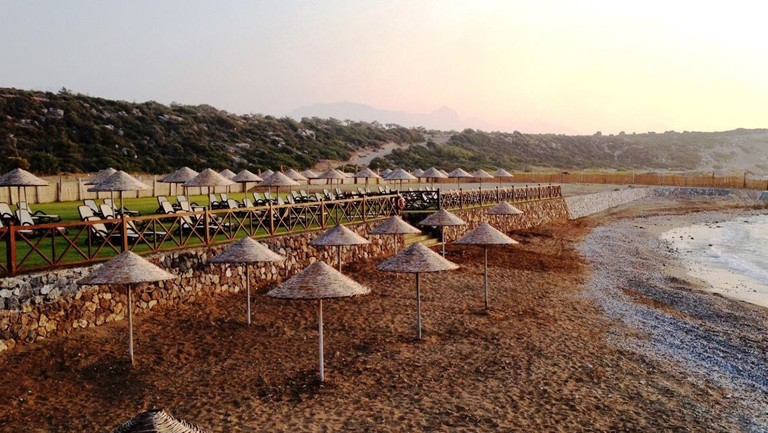 Plajda şezlong, şemsiye ve minder ücretsiz olarak sunulmaktadır.