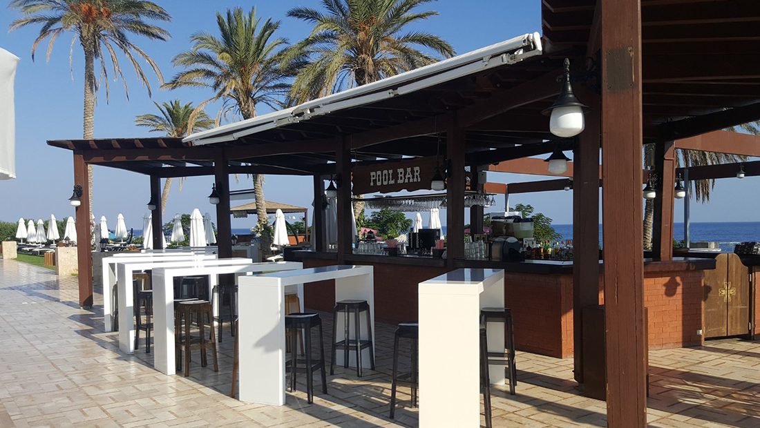 Yaz sezonunda havuz alanında alkollü-alkolsüz içecekler.