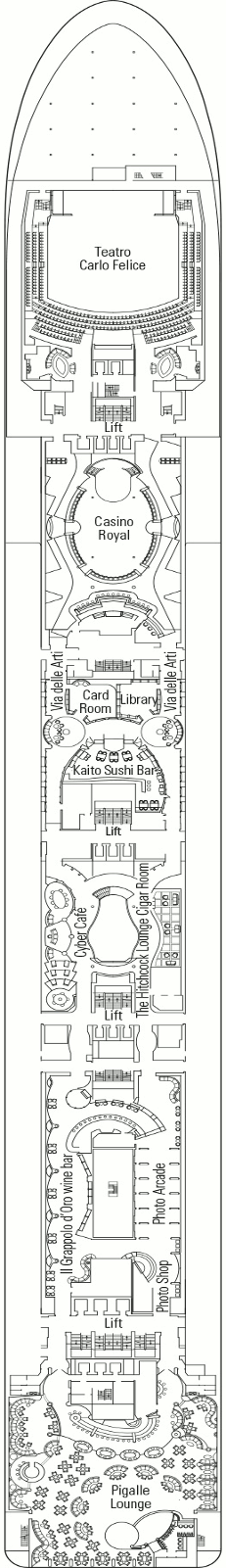 Restoranlar ve Barlar: Gemi, farklı mutfaklardan lezzetler sunan bir dizi restoran ve çeşitli barlar sunmaktadır.