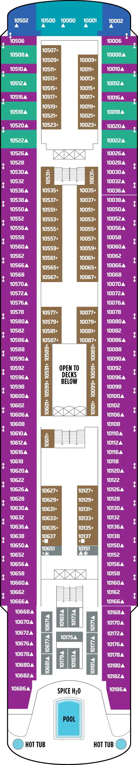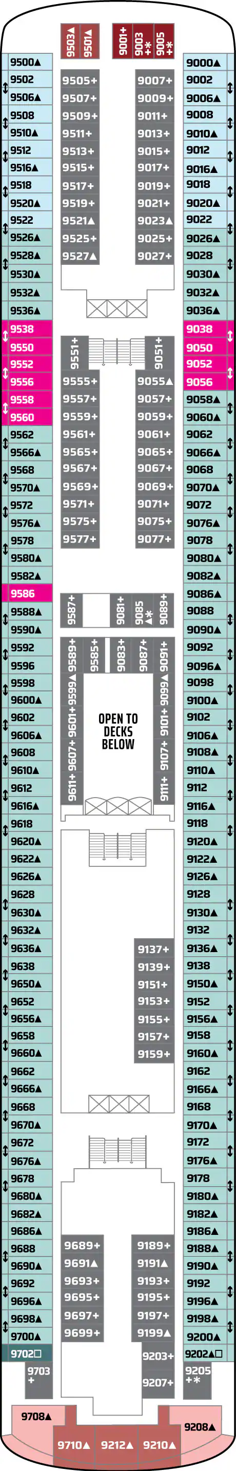 Bu geniş kamaralarda bir adet kraliçe yatak, oturma alanı ve özel balkona açılan tavandan tabana cam kapılar bulunmaktadır. Kamaralar yalnızca tek başına seyahat edenler için fiyatlandırılmıştır. Kapasite: 1 Toplam Yaklaşık Boyut: 14-18 m 2 Balkon Ölçüsü: 3 m 2 GÜVERTE: 9 KONUM: Pruva (Geminin ön kısmı)