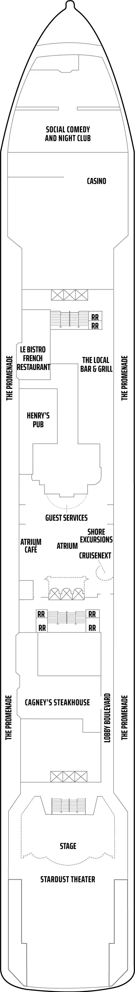 İç Kabinler, sizin için seyahat etmenin en uygun yoludur. Dört kişiye kadar yer olan kabinde, kraliçe boy yatağa dönüştürülebilen iki alt yatağınız ve iki kişiyi daha ağırlayacak ek yatak takımınız olacak. 9085, 10151, 10651, 11131 ve 11631 numaralı kabinlerdeki yataklar, odanın ortasındaki direk nedeniyle bir araya itilemez. Kapasite: 3-4 Toplam Yaklaşık Boyut: 13-26 m2 GÜVERTE: 4, 5, 6, 8, 9, 10, 11 KONUM: Pruva, Orta, Kıç taraf