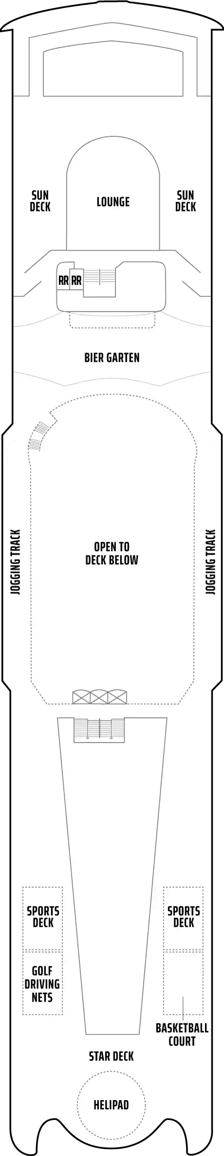 Oturma alanı, yemek alanı ve büyük özel balkona sahip bu Penthouse'larda en fazla üç misafir konaklayabilir. Bunlar arkaya bakan Penthouse'lar olduğundan, özel balkonunuzdan manzara gerçekten muhteşemdir. Ayrıca, kraliçe yataklı bir yatak odası, duşlu lüks banyo ve bir ek misafirin uyuyabileceği ek yatak takımı içerir. Uşak ve konsiyerj hizmeti dahildir. Bazıları, en üst düzey şımartma için bir Sahip Süitine bağlanabilir. Kapasite: 3 Toplam Yaklaşık Boyut: 38 m 2 Balkon Ölçüsü: 7 m 2 GÜVERTE: 9 KONUM: Kıç taraf (Geminin arka kısmı)