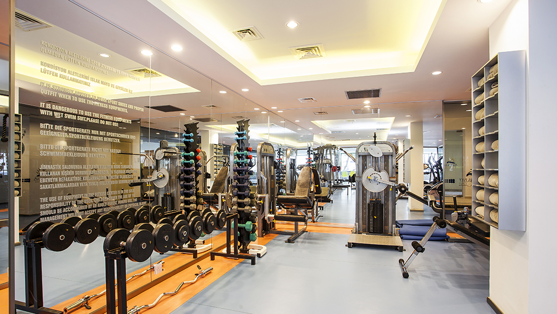 Ayrıca bu merkezde fitness salonu da sağlıklı bir tatil için hizmet vermektedir.